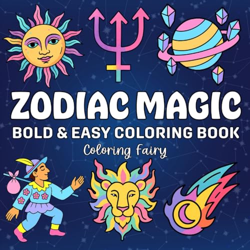 Zodiac Magic: Bold & Easy Coloring Book for All Ages – 50 Astrology Symbols & Celestial Designs for Relaxation & Stress Relief