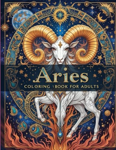 Aries Coloring Book for Adults: Intricate Zodiac-Themed Line Art Featuring Aries Symbols, Celestial Rams, and Astrology Designs for Stress Relief and Mindful Creativity