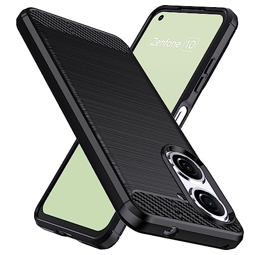 Natbok Kompatibel med Asus Zenfone 10/Zenfone 9 fodral, flexibel TPU [borstad struktur] [halkskydd] stötsäkert militärt skydd stötfångare telefonfodral, smalt fodral för Asus Zenfone 10, svart