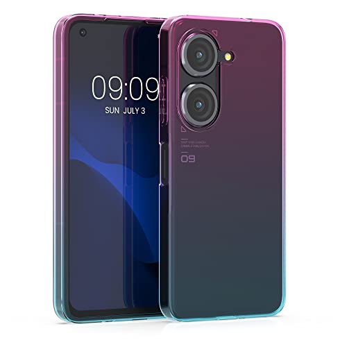 Kwmobile fodral kompatibelt med ASUS Zenfone 10/Zenfone 9 - klart TPU mjukt smartphonefodral - tvåfärgad mörk rosa/blå/transparent