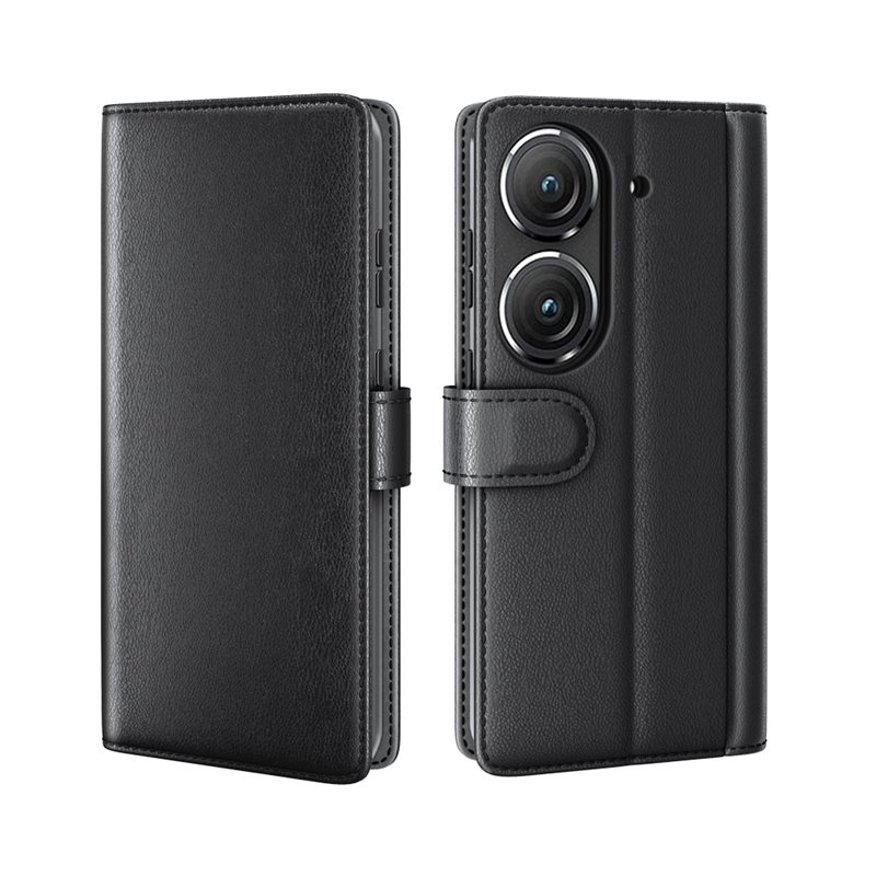 Asus ZenFone 9 Plånboksfodral i Äkta Läder, Svart