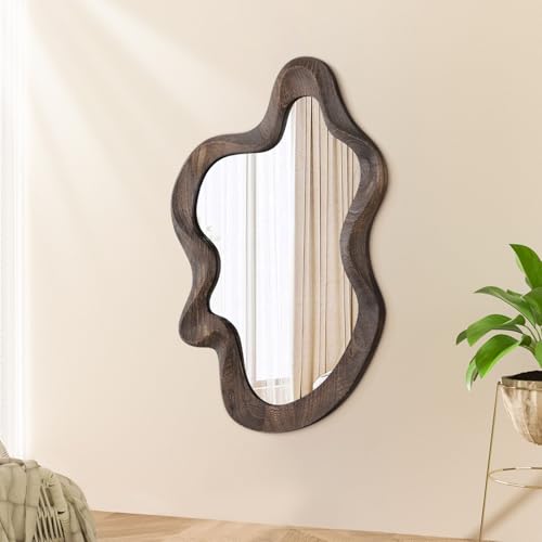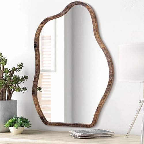 Asymmetrisk spegel för väggdekor stor söt och snygg unik trä inramad väggspegel sminkbord konstnärlig molnspegel dekorativ för vardagsrum sovrum badrum entré