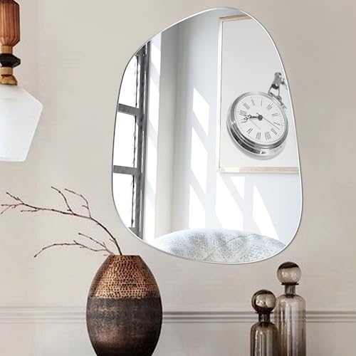 Sqinor Spegel asymmetrisk limning ramlös dekorativ spegel, självhäftande modern väggspiegel för badrum, vardagsrum och hall