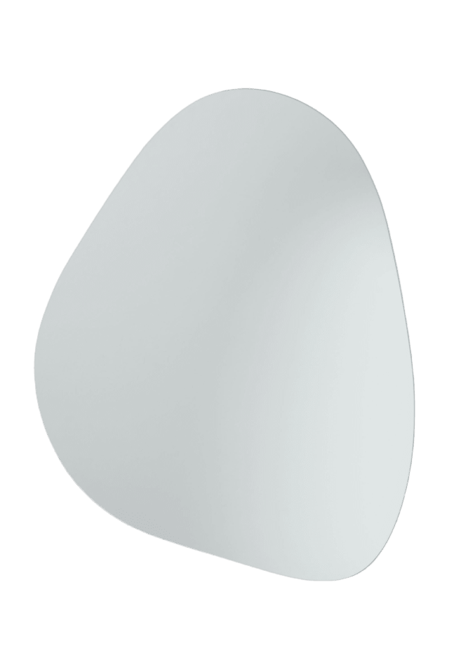 Albatros designerspegel, asymmetrisk 90 x 70 cm – väggspegel eller dörrspegel, modern organisk form – spegel oval och stor – asymmetrisk spegel oformad och ramlös, spegelvägg