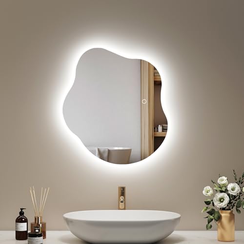 Bakgrundsbelyst Badrumsspegel med Lampor, Sminkspegel Modern Ramlös Asymmetrisk Fasad Dekorativ Spegel - Polerad Kant (Color : 3 colors+dimmable, Size : 50 * 70cm)
