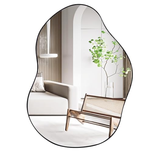 EMKE Väggspegel, asymmetrisk oval badrumsspegel, lämplig för badrum, sovrum, vardagsrum, hall, byrå, dekorativ spegel, 50 x 70 cm