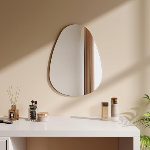 EMKE Väggspegel, asymmetrisk oval badrumsspegel, lämplig för badrum, sovrum, vardagsrum, hall, byrå, dekorativ spegel, 60 x 80 cm