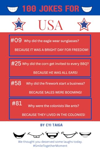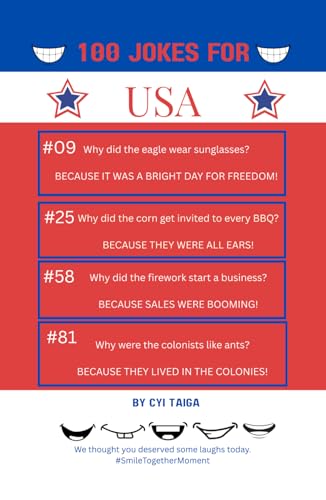 100 Jokes for USA 4th of July from #SmileTogtherMoment: 100 Hilarious Patriotic Jokes to Make Everyone at the BBQ Laugh (100 Jokes from ... Her, and Patriotic Hosts Who Love America!