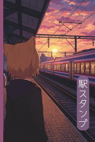 Japan Eki Stamp Book | Cute Kawaii Anime Cat Girl Watching Train At Sunset | 4 x 6 Passport Sized Collection Book: Start Your Own Travel Stamp Collection