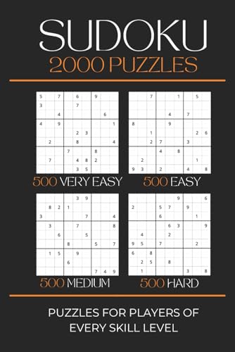 Sudoku 2000 Puzzles: 2000 Puzzles Across Four Difficulty Levels (Very Easy, Easy, Normal, and Hard with 500 Puzzles At Each Level) For Everyone From ... Stress, Train Your Brain, or Give as a Gift