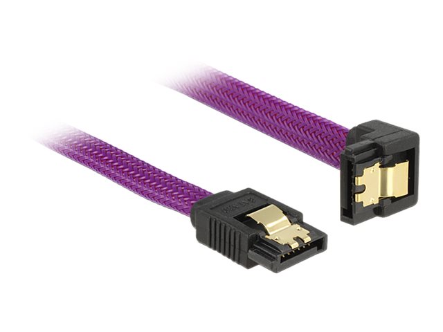Delock Premium - Sata-Kabel - Serial Ata 150/300/600 - Sata (Hane) Till Sata (Hane) - 50 Cm - Sprintlåsning, 90° Anslutning - Lila
