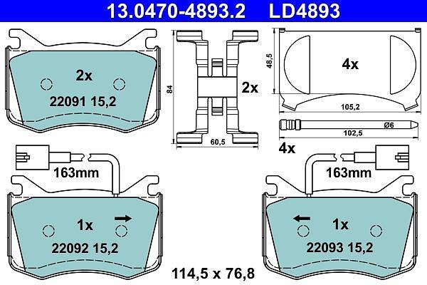 ATE Mercedes-Benz Bromsbelaggssats skivbroms Ceramic 13047090002