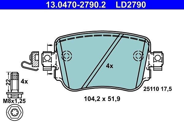ATE Audi Bromsbelaggssats skivbroms Ceramic 13047027702