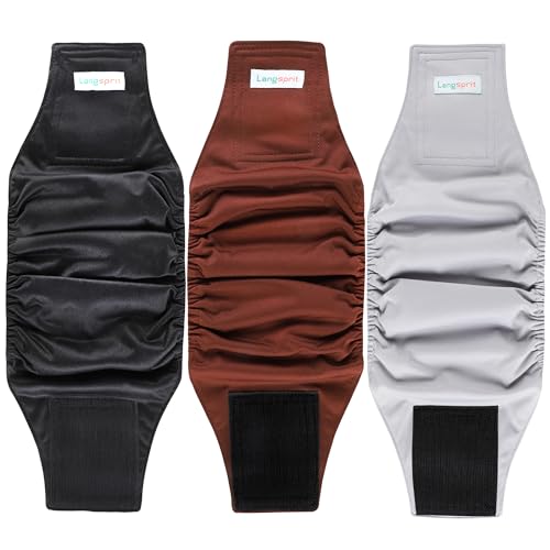 Langsprit 3 st hundmagband för hanhundar, mycket absorberande och tvättbara, återanvändbara blöjor för hanhundar (svart, grå, kaffe, medium)