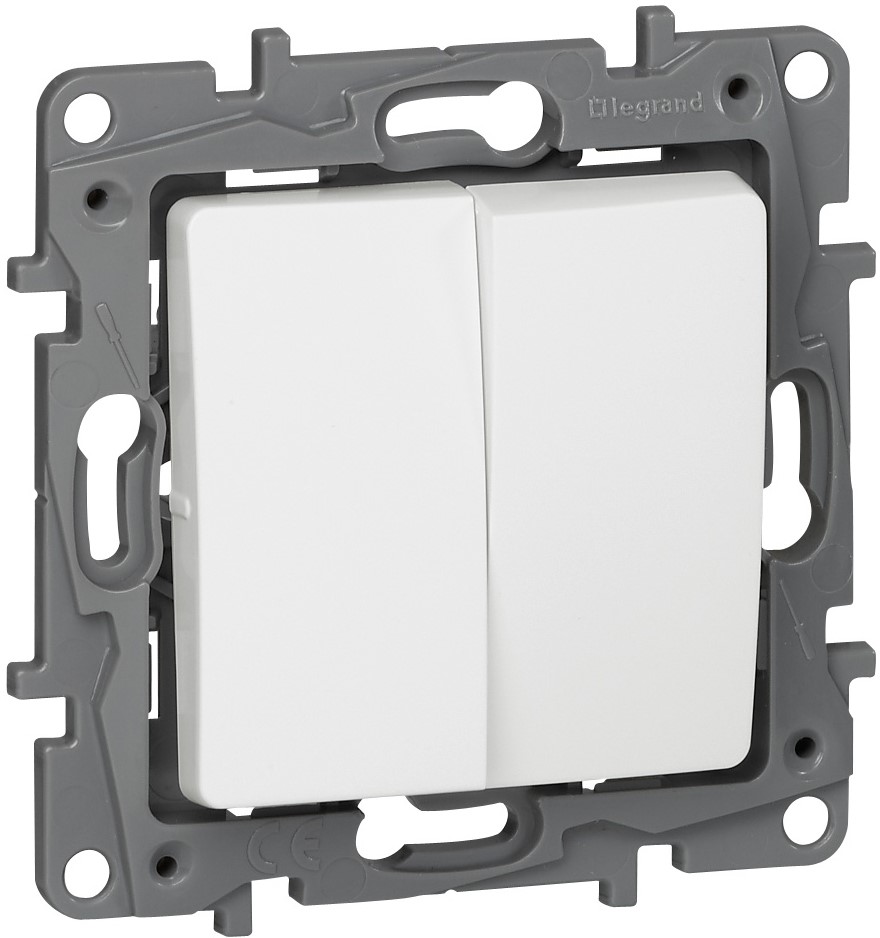 Strömbrytare, återfjädrande, 2 knappar, vit