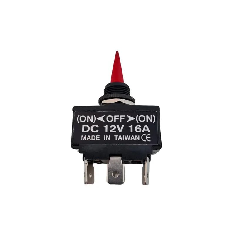 Återfjädrande strömbrytare, 3-polig, (På)-Av-På, 12 V, 15 A, svart