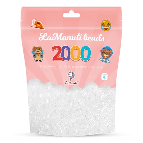 La Manuli strykpärlor ca 2 000 stycken midipärlor i en återförslutningsbar påse | påfyllningsset pysselpärlor kompatibla med alla märkespärlor | 5 mm pärlor (transparent)