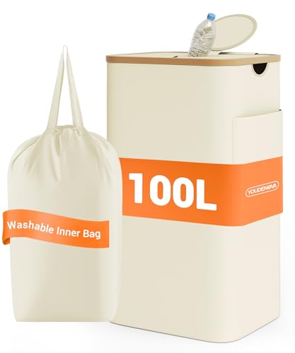 YOUDENOVA 100L pantflaskor, samlingsbehållare med lock och luktsäker, soptunna, kök, flaskbehållare, tomt och avfall glas, förvaring, återvinning, behållare, sopsäckställ för förråd, beige