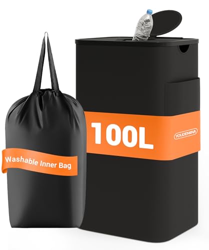 YOUDENOVA 100L pantflaskor, samlingsbehållare med lock och luktsäker, soptunna, kök, flaskbehållare, tomt och avfall glas, förvaring, återvinning, behållare, sopsäckställ för förråd, svart