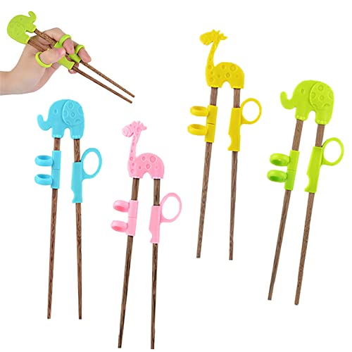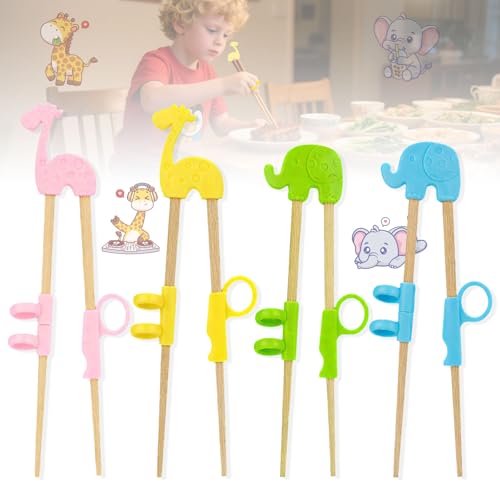 Ätpinnar för barn, 4 par träning ätpinnar, återanvändbara barn ätpinnar, lära sig ätpinnar djur lära sig ätpinnar elefant giraff