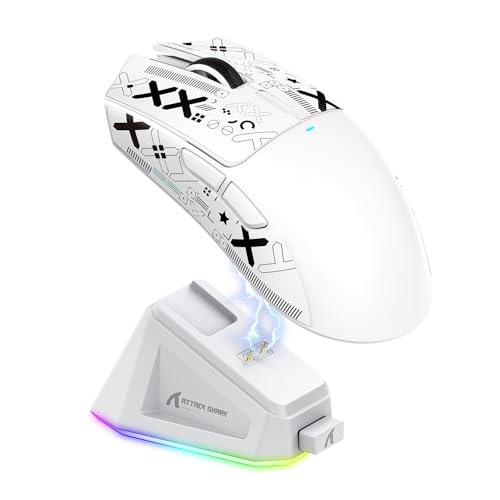 LexonElec x ATTACK SHARK X11 Trådlös Spelmus med RGB Magnetisk Laddningsdocka, PixArt PAW3311-Sensor, Lätt 59g Tri-Mode Spelmus, Trådbunden/2,4G/BT, Upp Till 22K DPI för PC/Mac-White