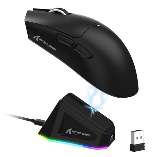 LexonElec x ATTACK SHARK X11 Trådlös Spelmus med RGB Magnetisk Laddningsdocka, PixArt PAW3311-Sensor, Lätt 59g Tri-Mode Spelmus, Trådbunden/2,4G/BT, Upp Till 22K DPI för PC/Mac-Black