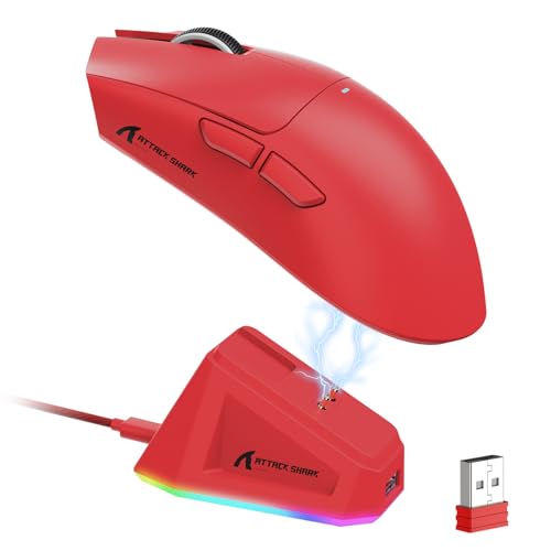 ATTACK SHARK X11 spelmus med magnetisk laddningsdocka, PixArt PAW3311 spelsensor, BT/2.4G trådlös/trådbunden spelmus, 22000 DPI, kontorsmöss gamermöss för Win11/Xbox/PS/Mac (röd)