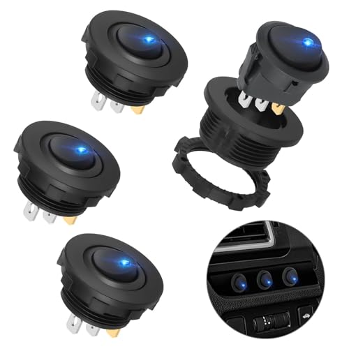Linkstyle 4 st strömbrytare 12V, attentät 20 A SPST ON/OFF rund vippströmbrytare med 3 stift hölje och LED-lampa för bil och båt