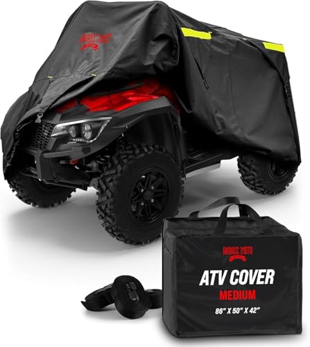 Badass Moto Heavy-Duty, trippelvattentätt 4-hjulsskydd – ATV fodral fyrhjuling. Rip-resistent, nattreflekterande fyrhjuling med avancerad vattentätning, lättåtkomlig dragkedja och ventiler. Medium 85