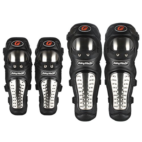 GES 4 st motorcykelknäskydd, vuxna motocross armbåge knänskydd, motocross racing skyddsdynor, legering stål motorcykelskyddssats för motocross, skridskoåkning, cykling, ATV (lång)