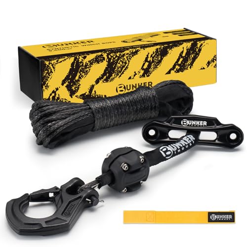 BUNKER INDUST syntetisk vinsch repsats, 3/16 tum x 50 tum 3 750 kg vinsch linjekabel ersättning med skyddshylsa + vinsch fairlead+ propp + krok för 4WD terrängfordon ATV UTV SUV (svart)
