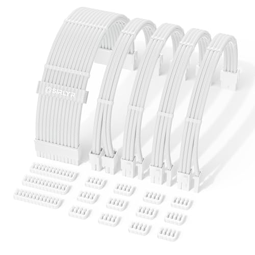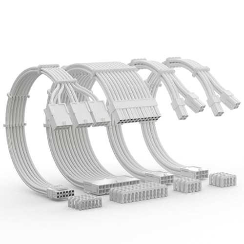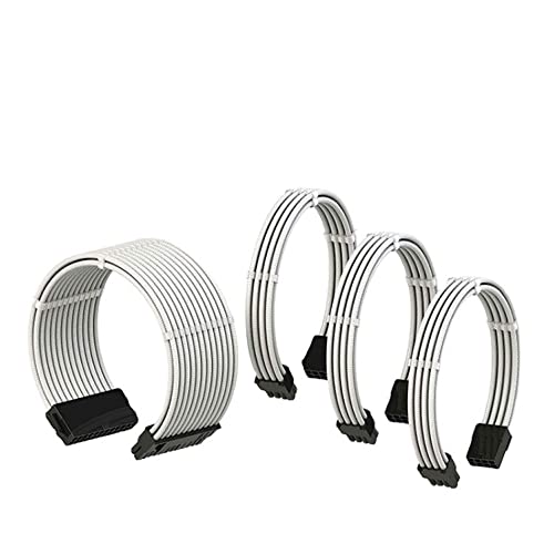 PSU-kabelförlängning, helvita PSU-kablar – enkel hantering nylonhylsad strömförsörjningskabel, 1 x 24 stift ATX/2 x 8 (4 + 4) stift EPs/2 x 8 (6+2) guldpläterad pin GPU, byggt fullt vitt PC-fodral, 5