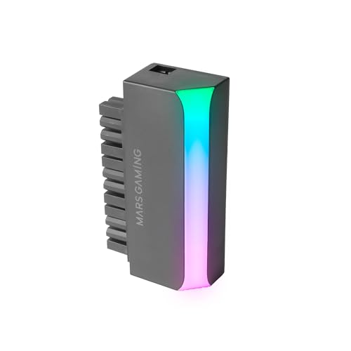 Mars Gaming MCA-L24, 24 PIN 90° ATX-adapter, 5 V 3-stifts ARGB-belysning, moderkort nätadapter, plug and play-installation, universell kompatibilitet, svart