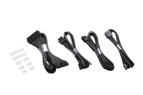 deleyCON Kabel för Strömförsörjning Förlängningskabel Set 6 Delar 30 cm Grafikkort PC Dator Mainboard ATX 24-Pin EPS 4+4-Pin PCI Express 6+2-Pin & 6-Pin Strömkabel Hane till Hona Svart Vit