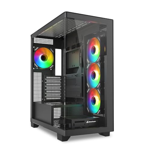 SaharaGaming P480TB-E RGB ATX PC-fodral (4 x 12 cm modulär piratöga ARGB-fläkt, kabelhantering, 10 portar fläkthub, PWM, SYNC) svart