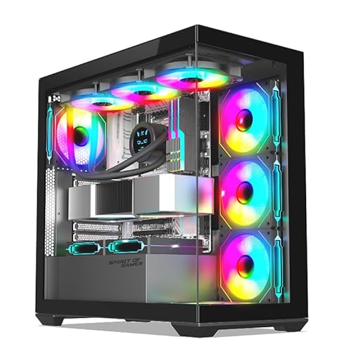 Spirit Of Gamer - Spark Dark, Aquarium RGB PC Gaming Chassi, ATX/mATX/mITX Kompatibel, 6 x 120 mm ARGB Fläktar Ingår, Tomt Speltorn i Mellanstorlek med Front Och Didopanel i 4 mm Härdat Glas