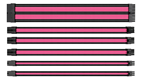 Thermaltake TtMod hylsa förlängningssladd kit ATX/EPS/8-stifts PCI-E/6-stifts PCI-E med kammar, rosa/svart AC-046-CN1NAN-A1