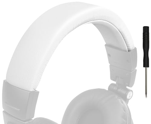 SOULWIT Protein läder huvudbandsskydd för Audio Technica ATH M50, M50X, M50XWH, M50XBT, M50XBT2, M50S/LE hörlurar, ersättnings pannband för reparation - Vit