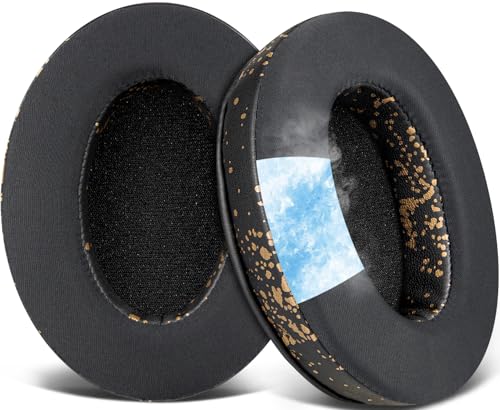 SOULWIT Kylgel Öronkuddar för Audio Technica ATH M50X/M40X, HyperX Cloud/Alpha, SteelSeries Arctis, för Sony MDR-1ABT/1RBT/1RNC/7506, Turtle Beach Stealth 420X/600 och fler(Svart Guld)