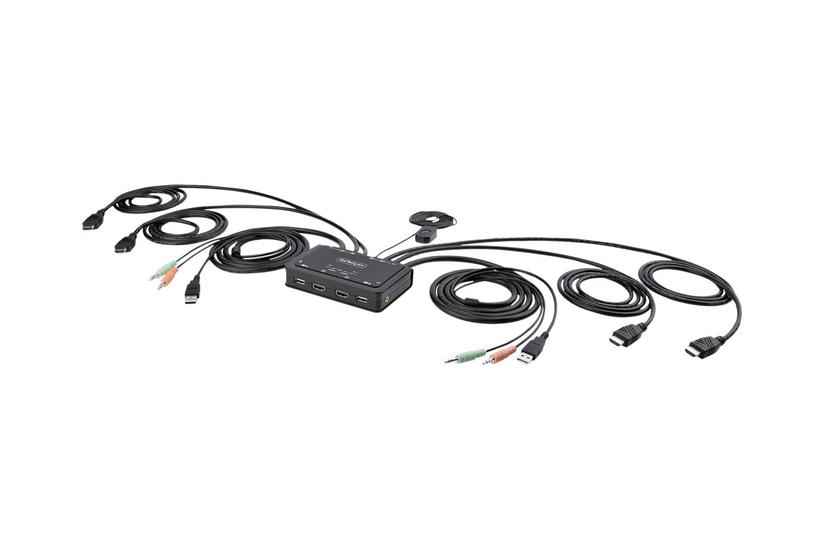 StarTech.com 2-Port Dual-Monitor HDMI Cable KVM Switch, 4K 60Hz, Compact KVM with 5ft/1.5m USB-A/HDMI/Audio Integrated Cables, Bus Powered - Remote Push Button/Hotkey Switching (C2-DH46-UA2-CBL-KVM) - omkopplare för tangentbord/video/mus/ljud/USB - kompak