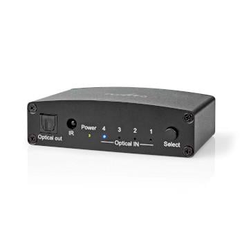 Nedis Digital Audio Switch | 4-vägs | Ingång för audio/video/dataanslutningar: DC Power / 4x TosLink | Audio / video / dataanslutningar utgång: TosLink Female | Fjärrkontroll / Instruktionsbok / Knapp | Metall | Svart