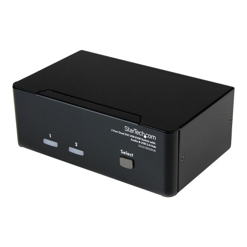 StarTech.com KVM-switch för dubbla DVI-bildskärmar med audio, 2 portar & USB 2.0-hubb - omkopplare för tangentbord/video/mus/ljud/USB - 2 portar