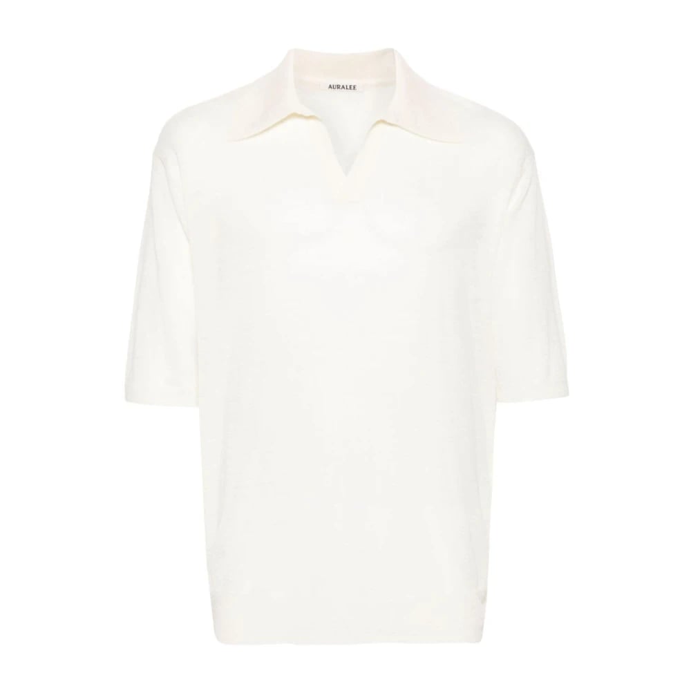 Auralee, Toppar , Herr, M, Vit Mélange Polokrage T-shirt