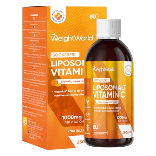 Liposomal C-vitamin - 250 ml veganska & sockerfria Droppar - Daglig 1000 mg Vit C med apelsinsmak - Alternativ till tabletter & kapslar - Maximal absorption & hög biotillgänglighet - WeightWorld