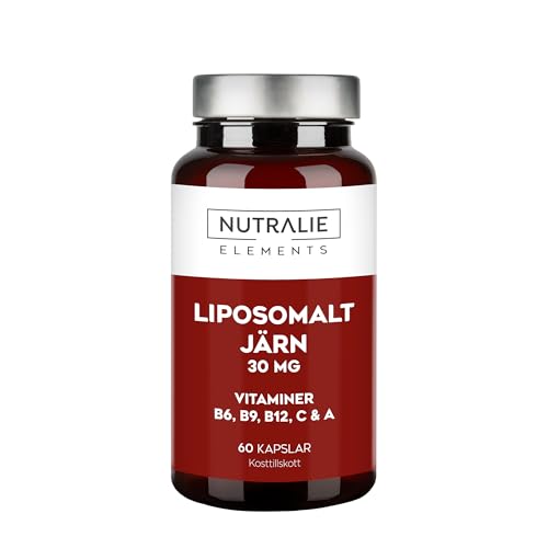 Liposomalt järn 30mg Elements - Trötthet och utmattning - Med Vitamin C, B12, Folsyra, A och B6 - Järntillskott - 60 kapslar Liposomal Iron Nutralie