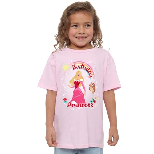 mandarin creative ltd Sleeping Beauty Birthday Princess with Aurora Girls T-tröja, rosa, 5–6 år för flickor och flickor, Rosenröd, 5-6 �r