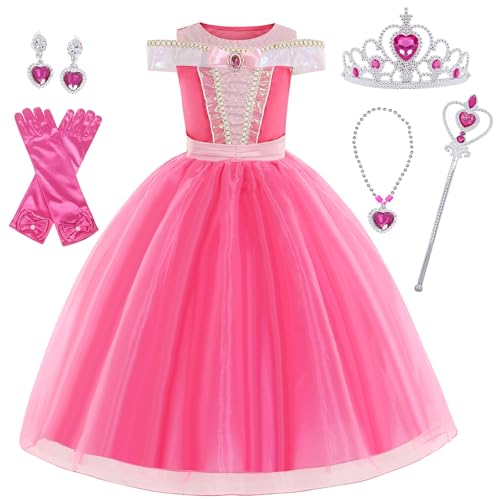 Sincere Party Flickor Aurora Sleeping Beauty Prinsessa Klänning med Tiara,Rosa Prinsessa Fancy Klänning 5-6år...