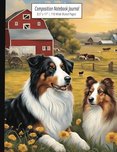 Farm Scene Composition Notebook: 8.5" x 11" | 110 Pages for Writing, Journaling or Note-Taking: Wide Ruled Journal with Australian Shepherd and ... for Dog Lovers, Farm Enthusiasts and Writers