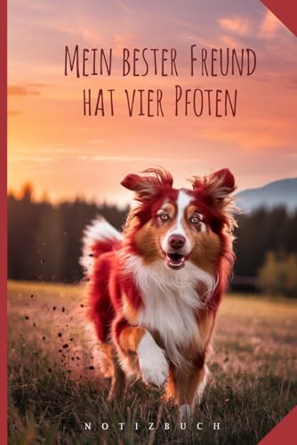 Spielender Hund auf Notizbuchcover - Notizbuch bester Freund vier Pfoten - für Hundebesitzer: Ein treuer Begleiter auf vier Pfoten – Erlebnisse mit deinem Australian Shepherd festhalten