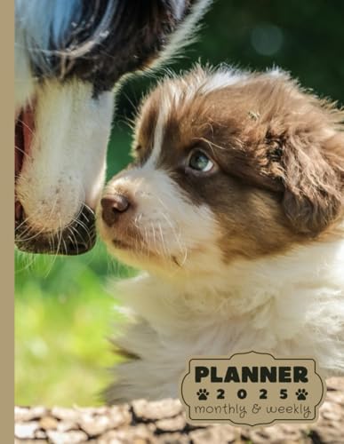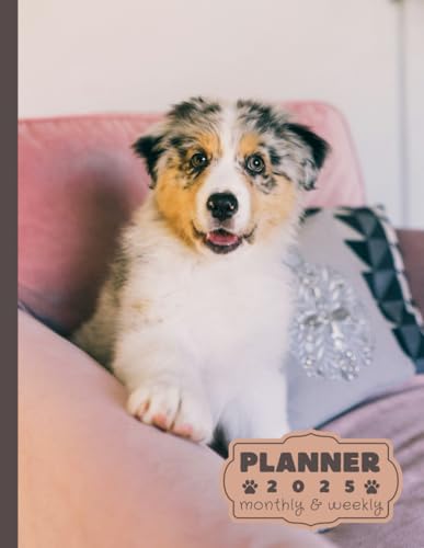 Puppy australian shepherd planner 2025: monthly and weekly 2025 | Puppy australian shepherd A4 2025 Diary | From Jan to Dec | Planning Giftable ... Extra Notes Pages | Animals Dog Breeds Pets